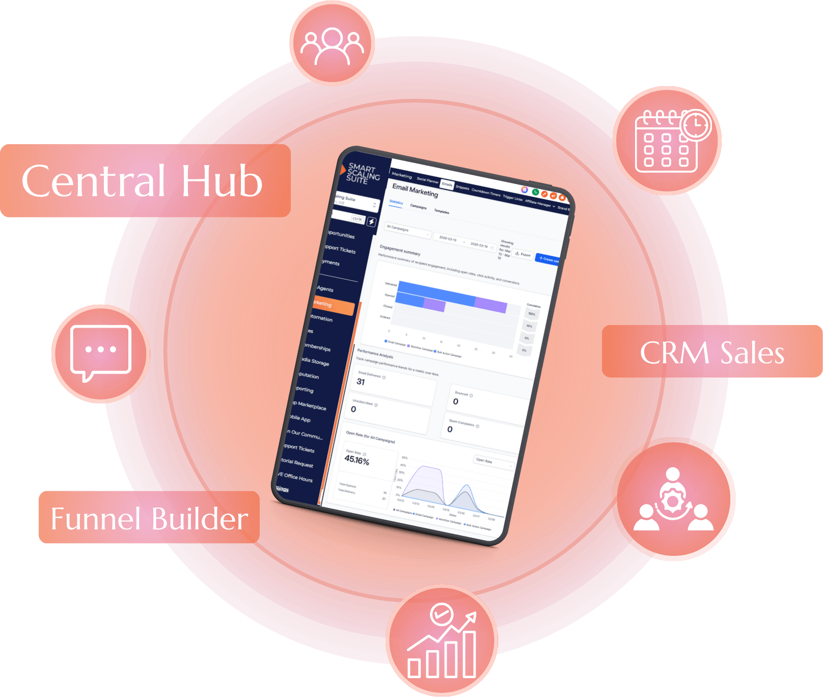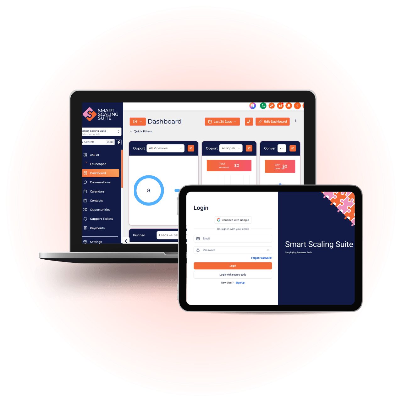 Smart Scaling Suite brings your core business tools together in a single, connected system, powered by HighLevel and branded to your business.