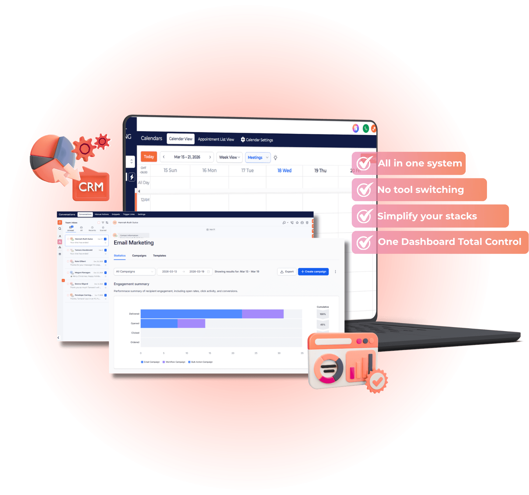 See at a glance who's in your pipeline, what campaigns are running, and what's bringing in revenue, all from one dashboard.